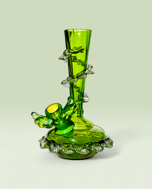 mid 1800's boho czech forest green glass thorn spill vase bong