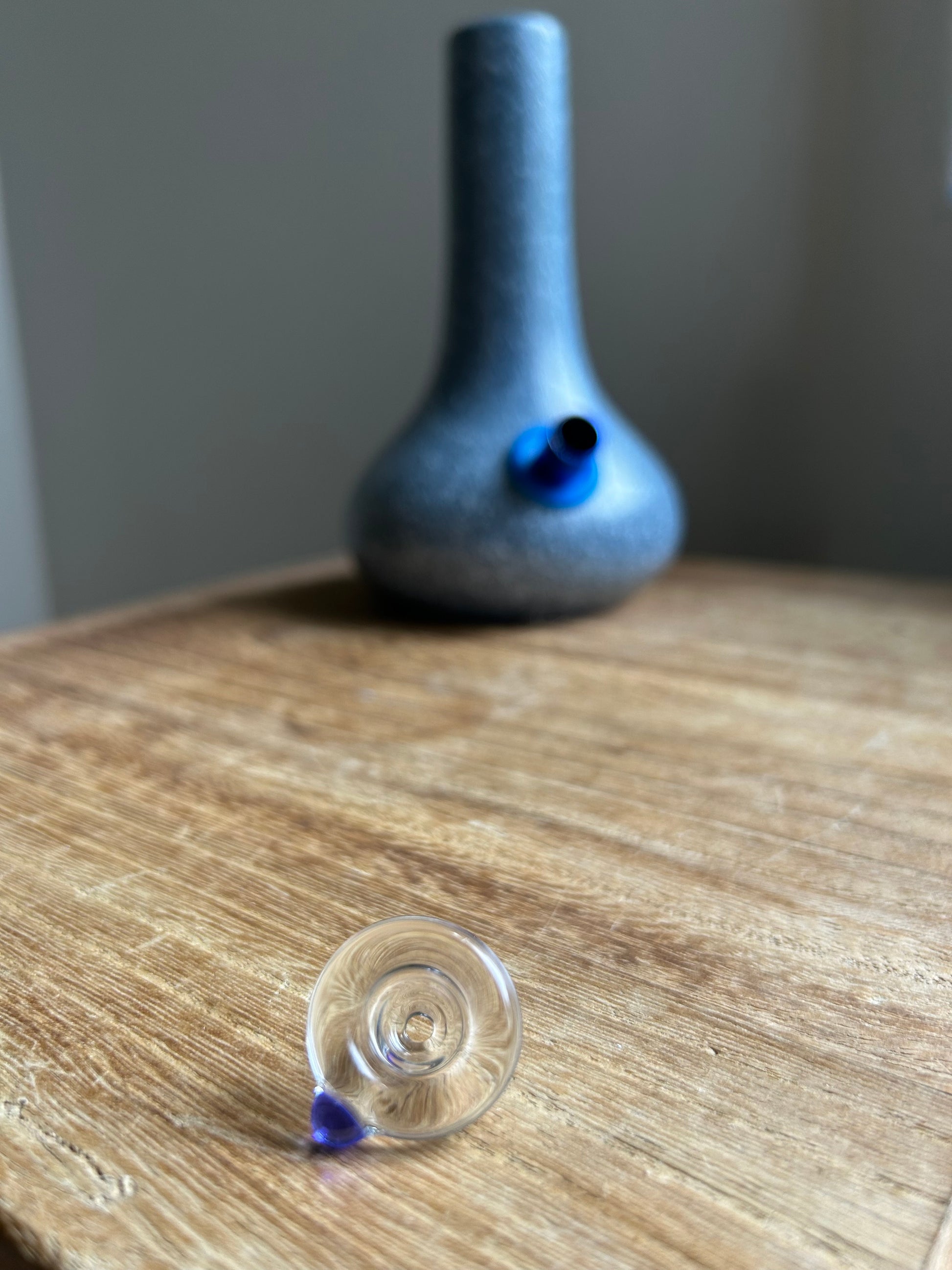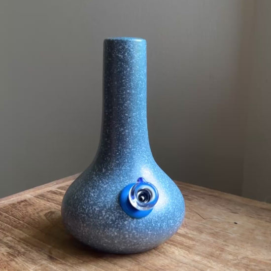 Mid-century blue-grey speckled studio vase, produced in Taiwan. Imagine the best ATV rig possible, and here it is. This piece is perfect for those who tend to break things easily. The vase and glass bowl are super strong. Made by @golovin_glass