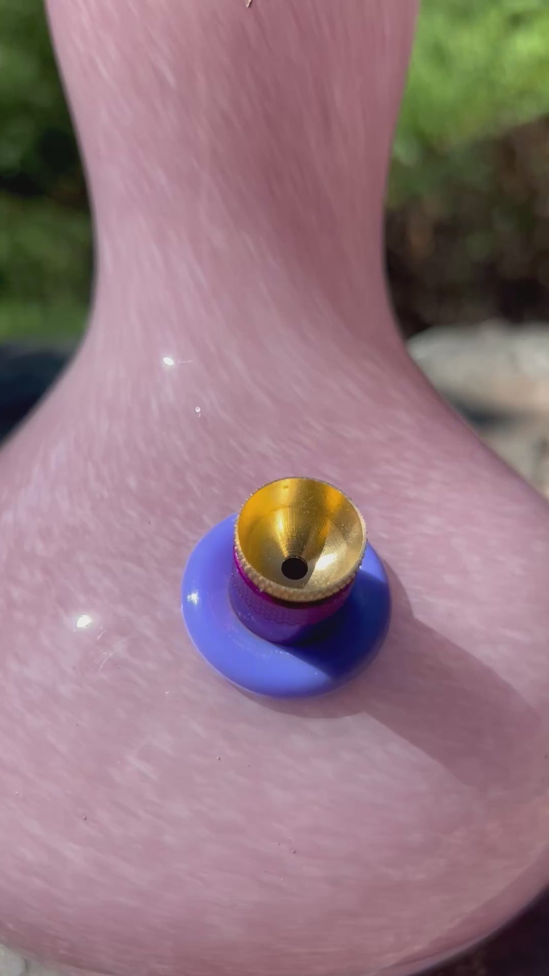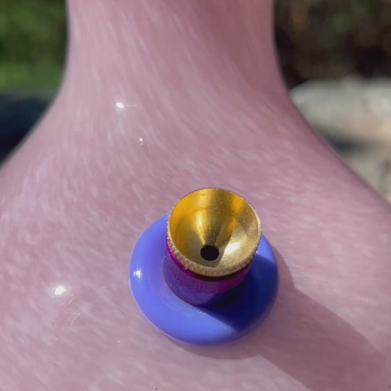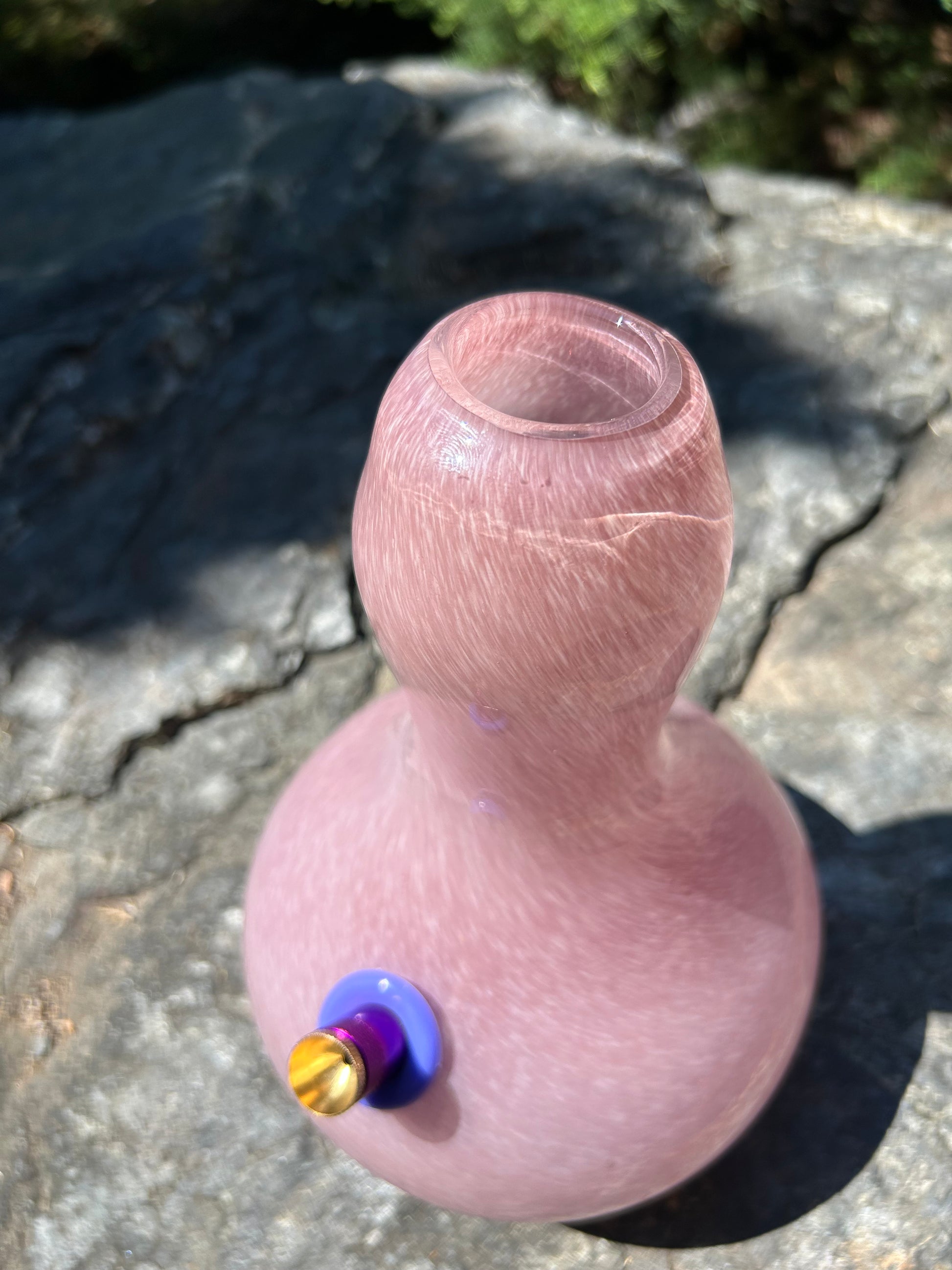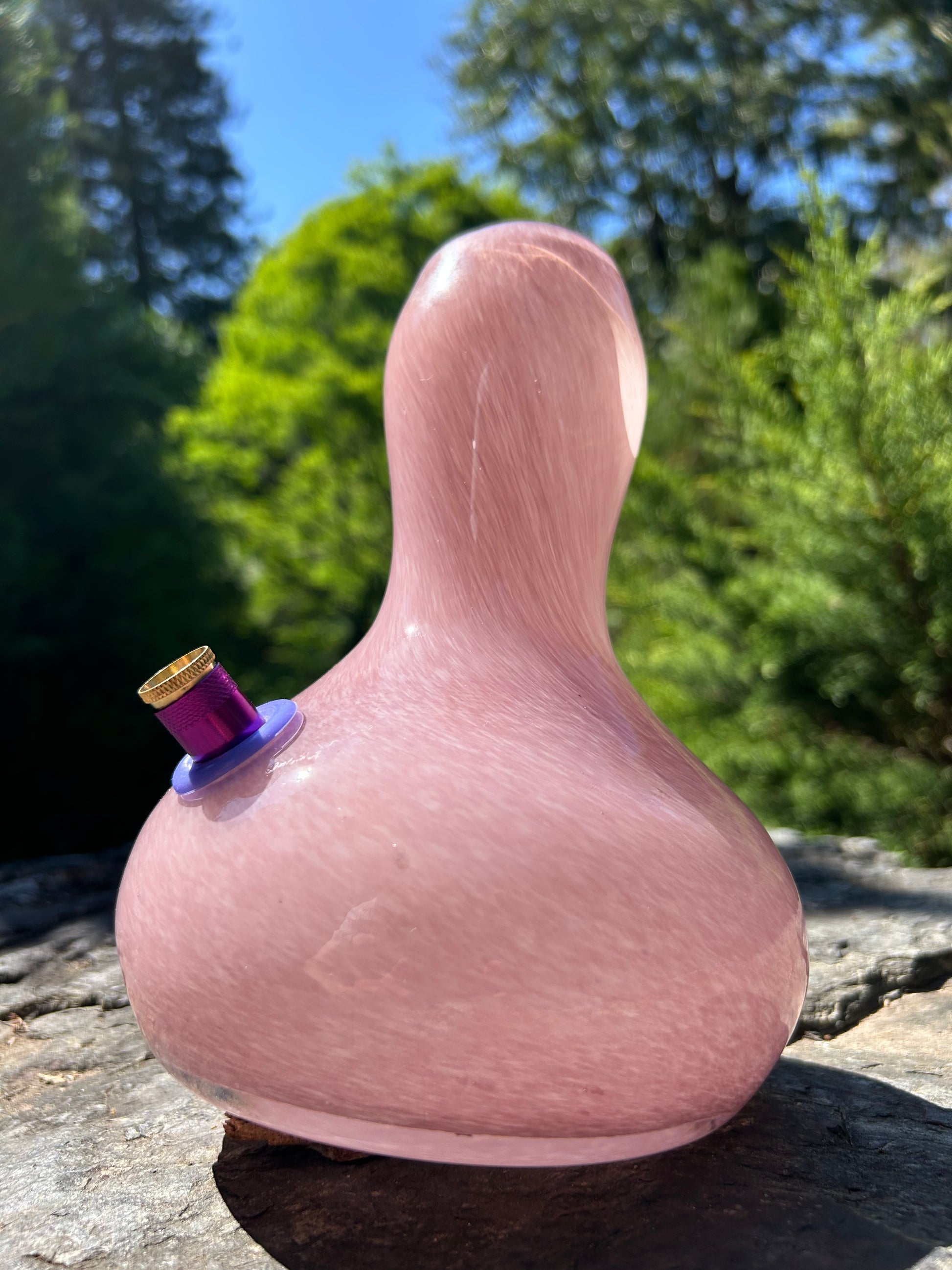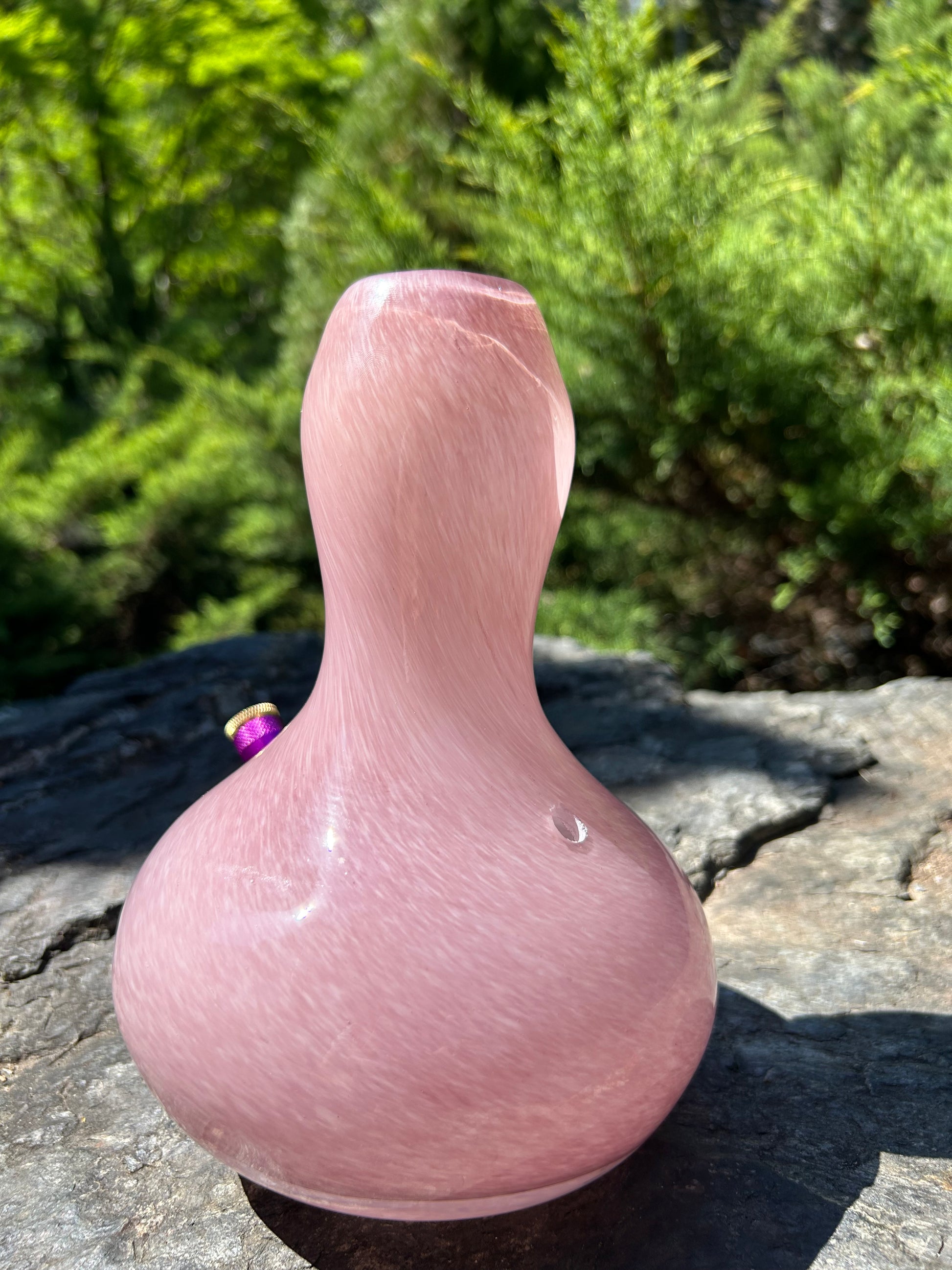 Crafted from premium purple glass, this elegant piece features fine streaks and swirling patterns of lavender and deep violet that create a stunning visual depth. Originally designed as a vase, its form has been expertly repurposed into a discreet, functional piece of glass art.