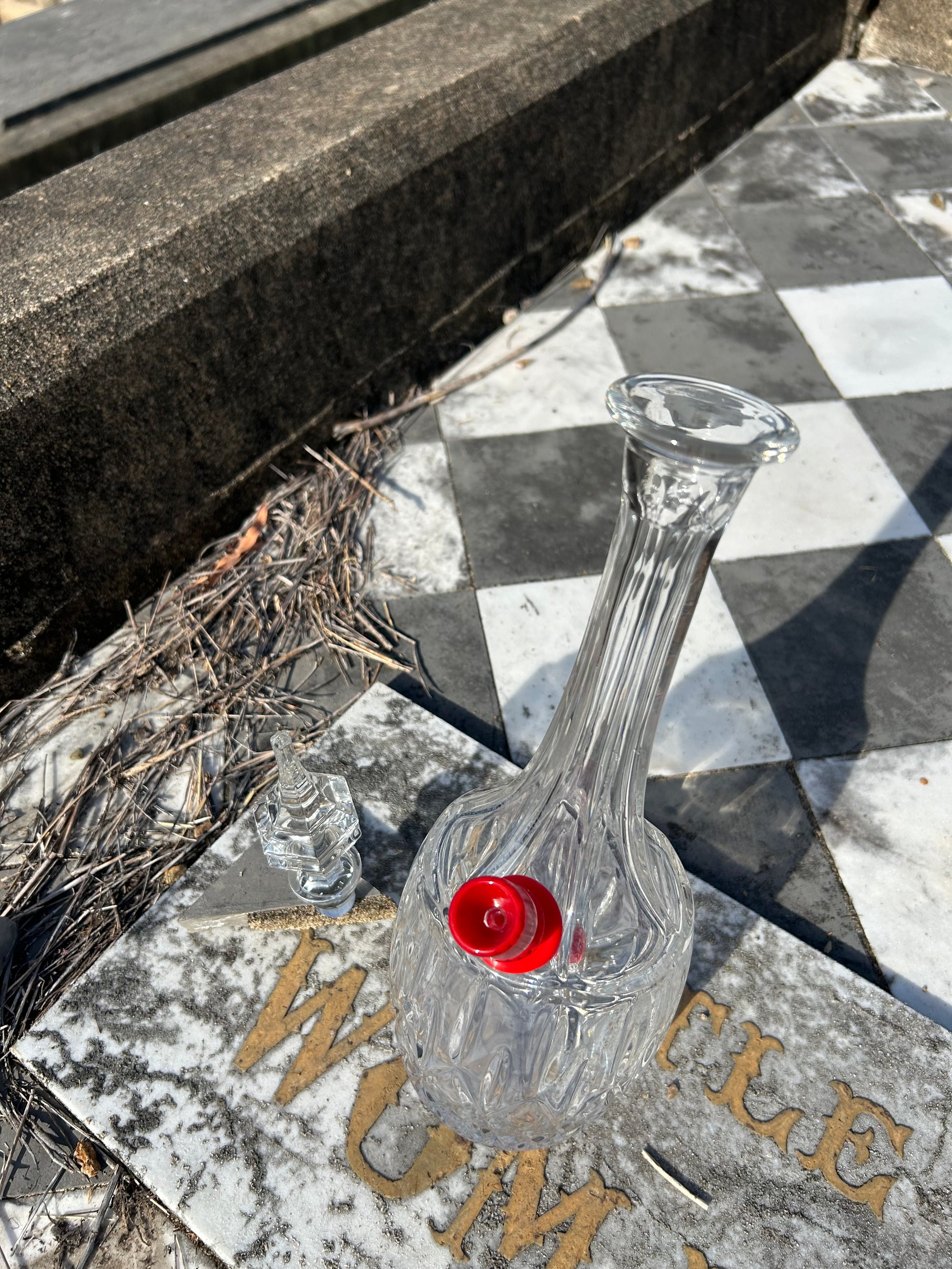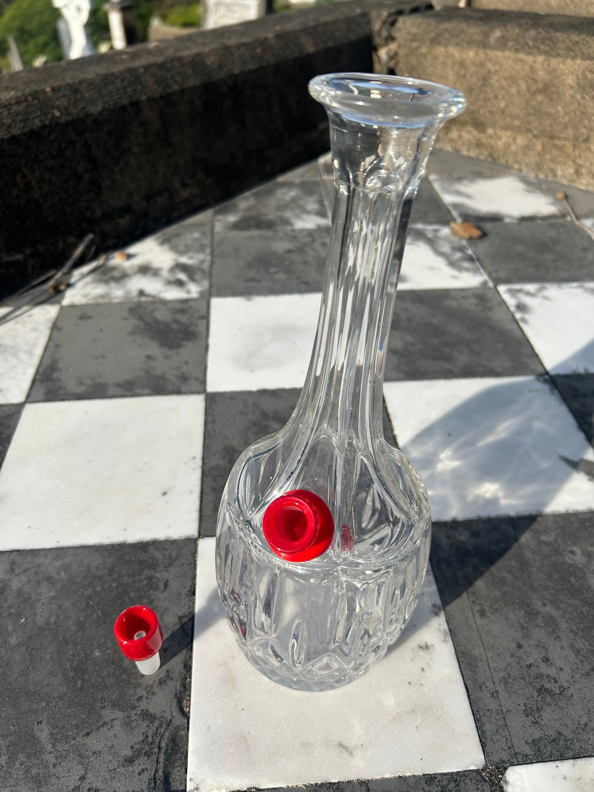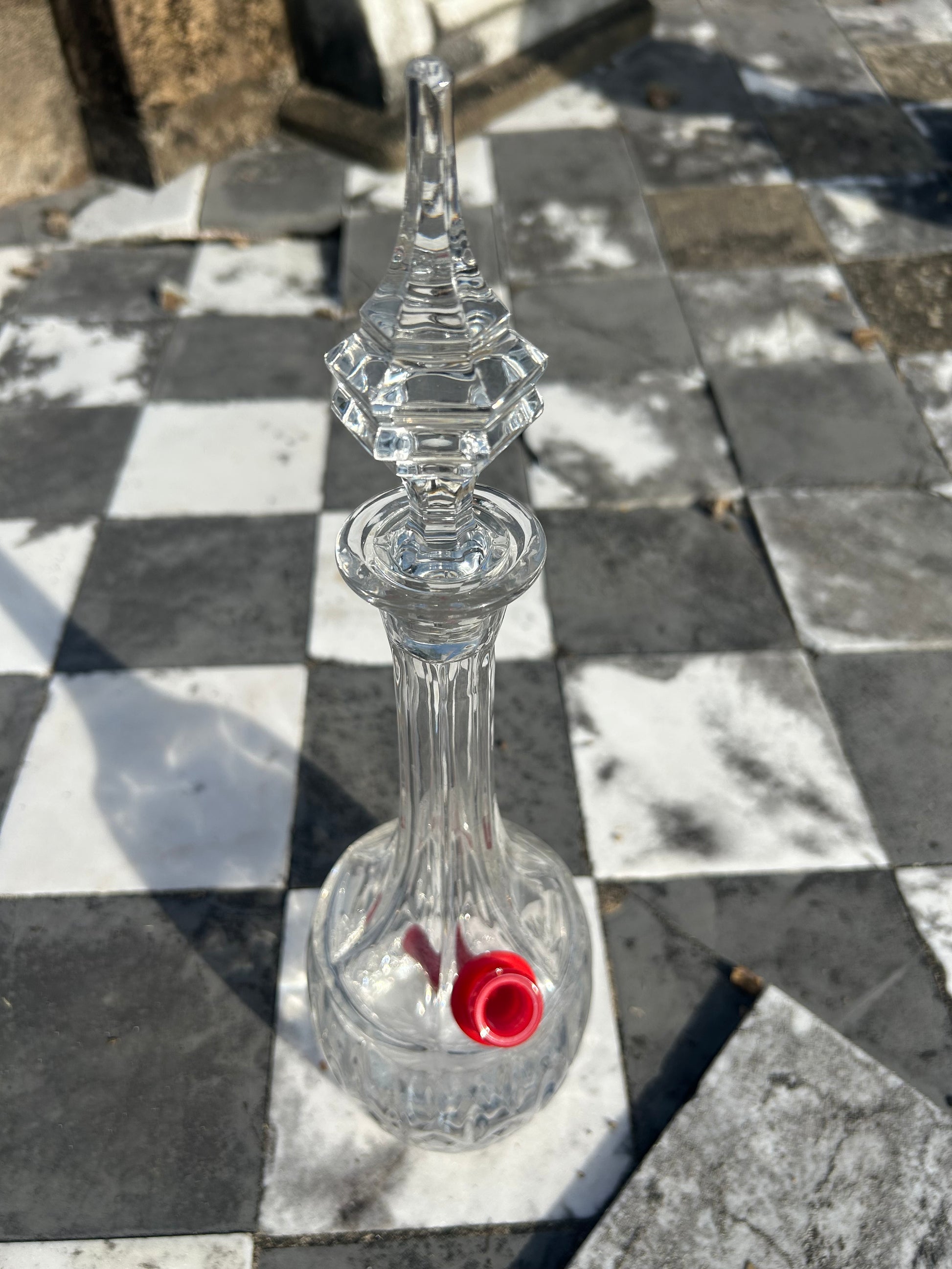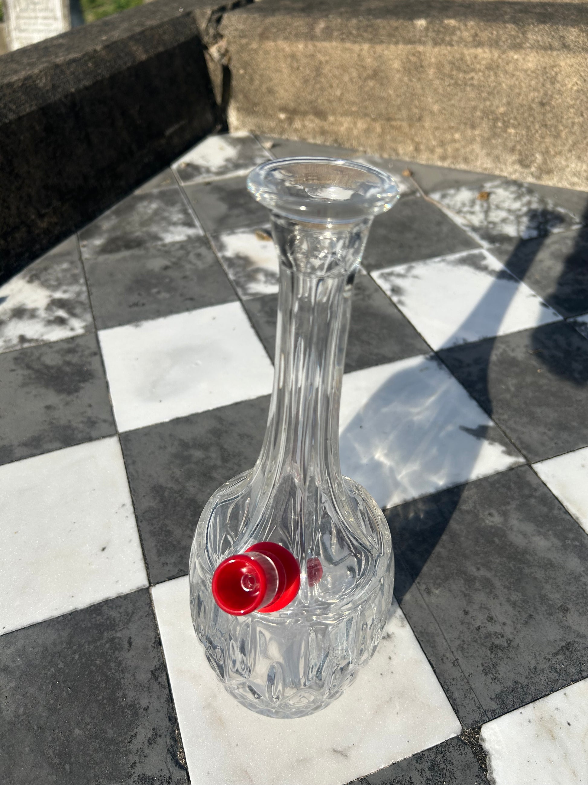 Originally crafted in 1984 as part of Gorham’s revered Lady Anne collection, this stunning piece of cross-cut Czech crystal has been thoughtfully repurposed into a unique smokeable decanter. Standing approximately 12 inches tall with its original crystal stopper, it retains all the elegance, weight, and clarity that made Lady Anne crystal a collectible favourite..now paired with a modern, functional twist. The intricate crosscut pattern catches light beautifully, giving the decanter a brilliant sparkle.
