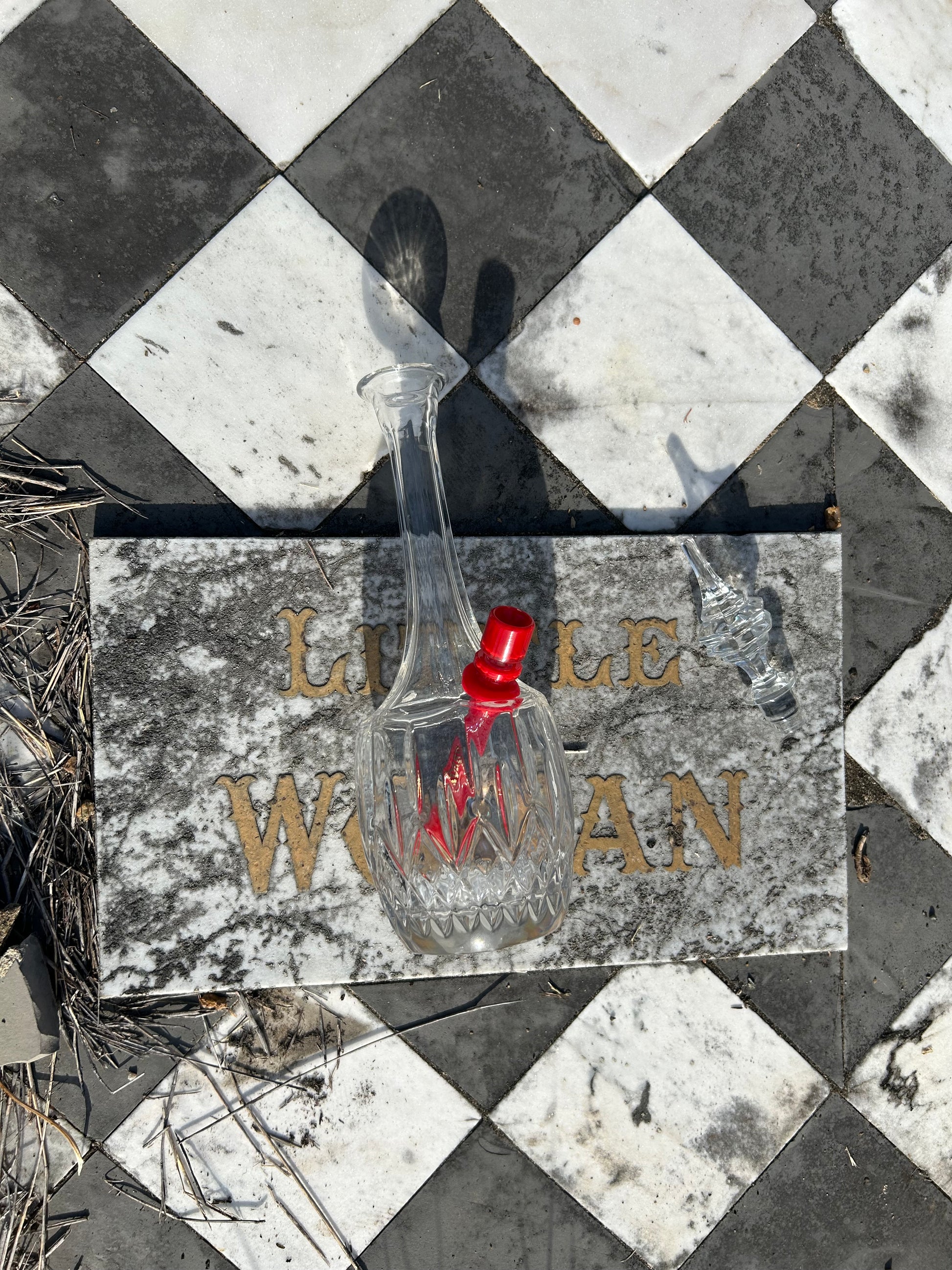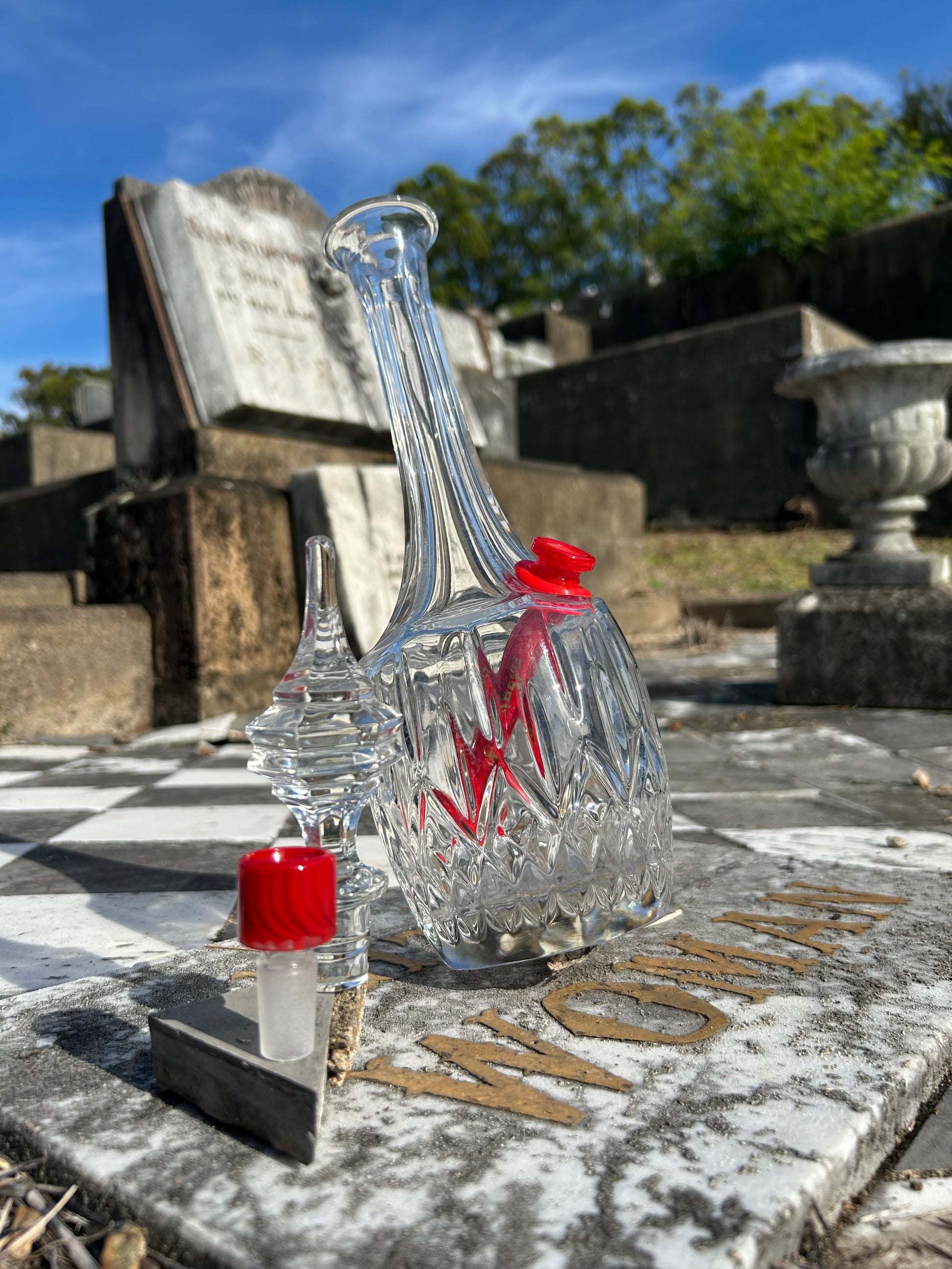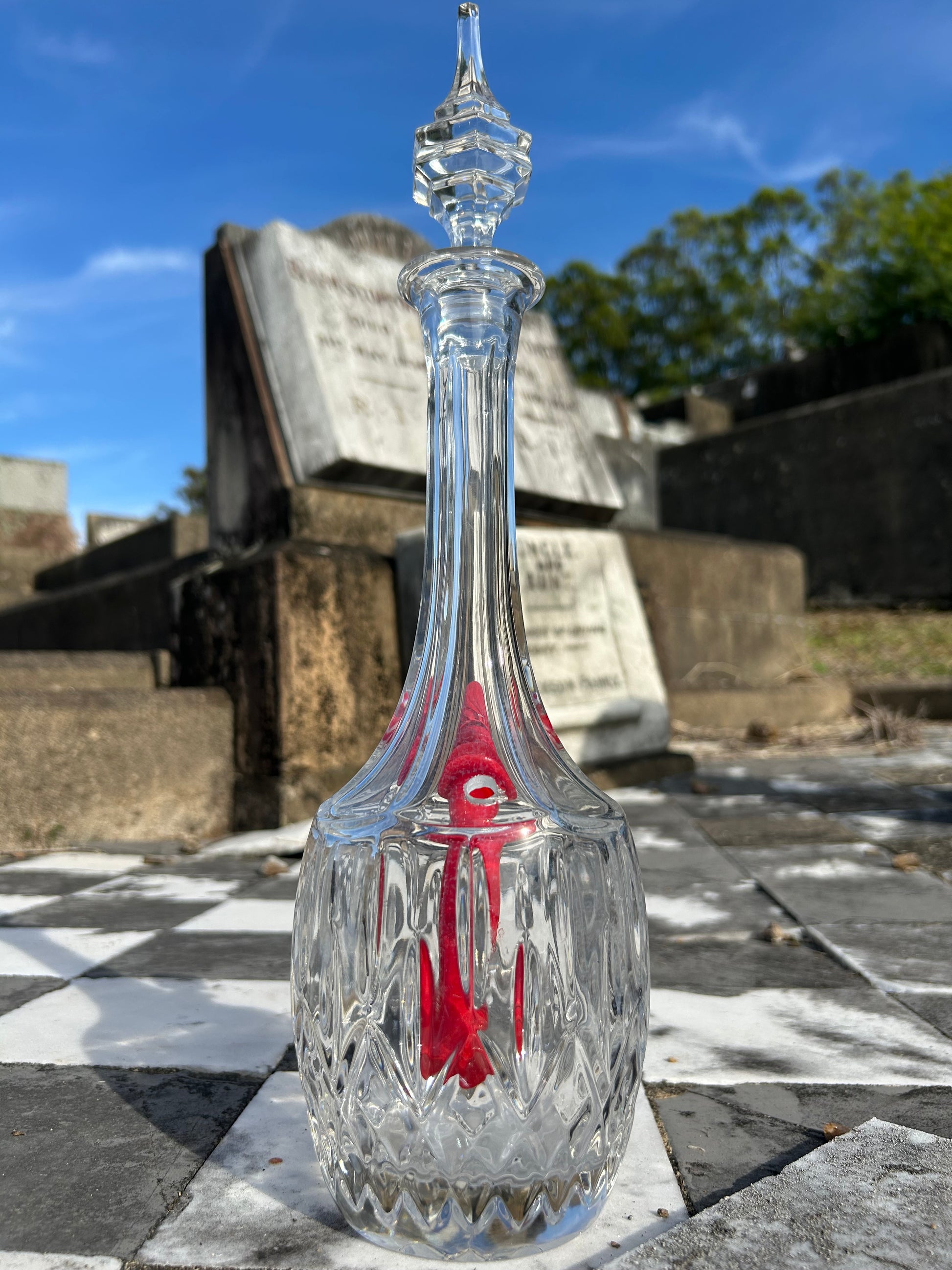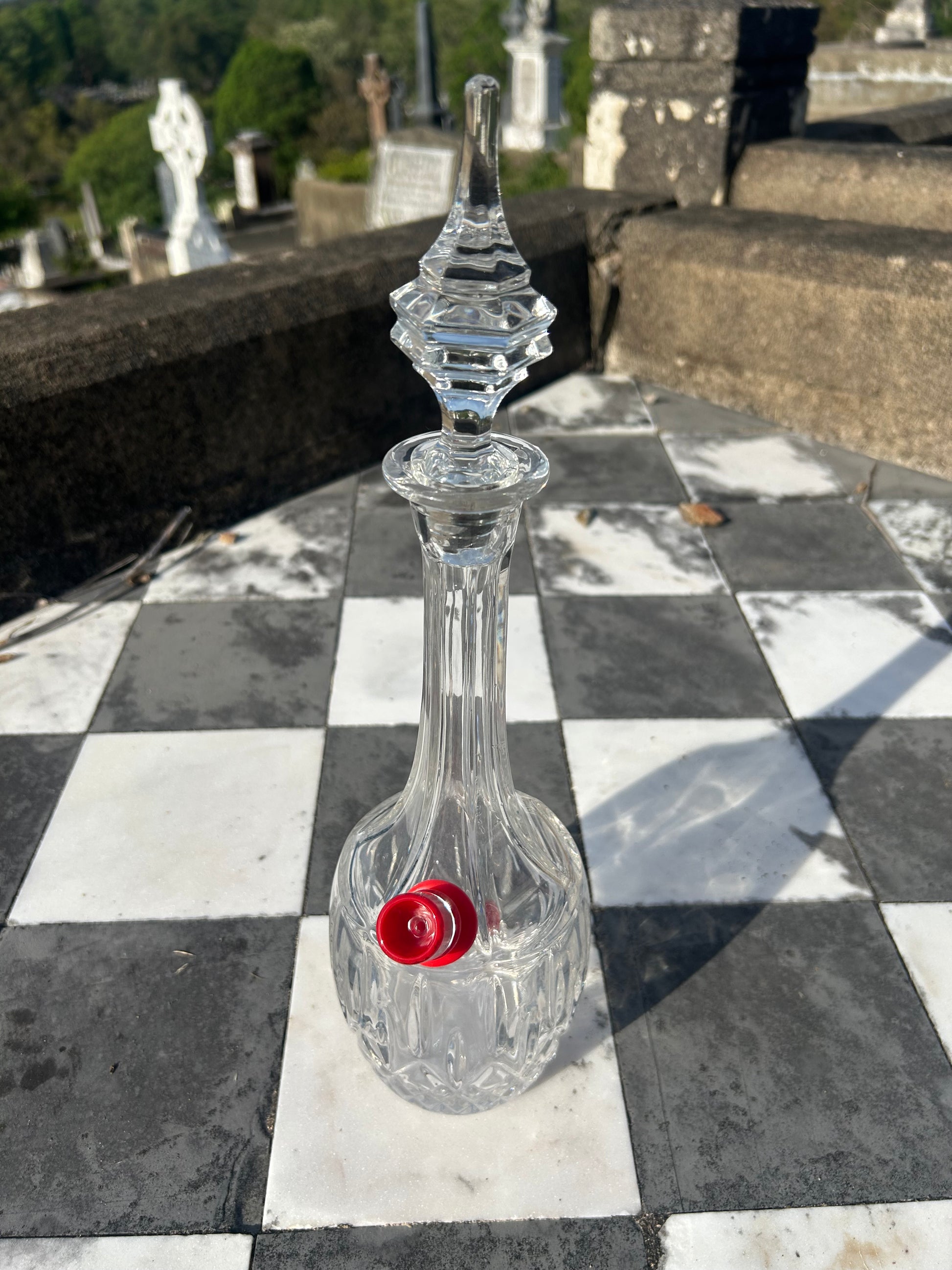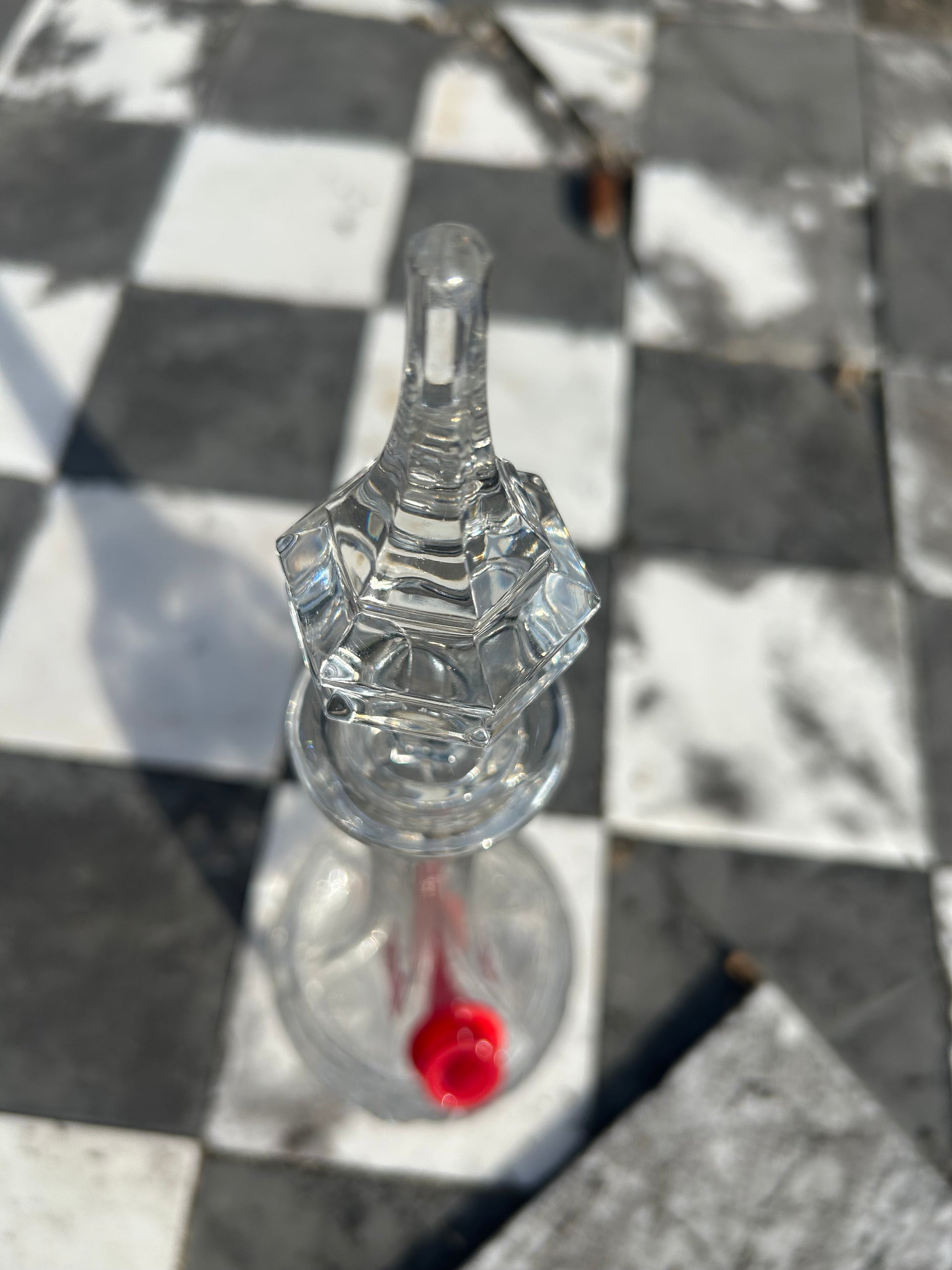 Originally crafted in 1984 as part of Gorham’s revered Lady Anne collection, this stunning piece of cross-cut Czech crystal has been thoughtfully repurposed into a unique smokeable decanter. Standing approximately 12 inches tall with its original crystal stopper, it retains all the elegance, weight, and clarity that made Lady Anne crystal a collectible favourite..now paired with a modern, functional twist. The intricate crosscut pattern catches light beautifully, giving the decanter a brilliant sparkle.