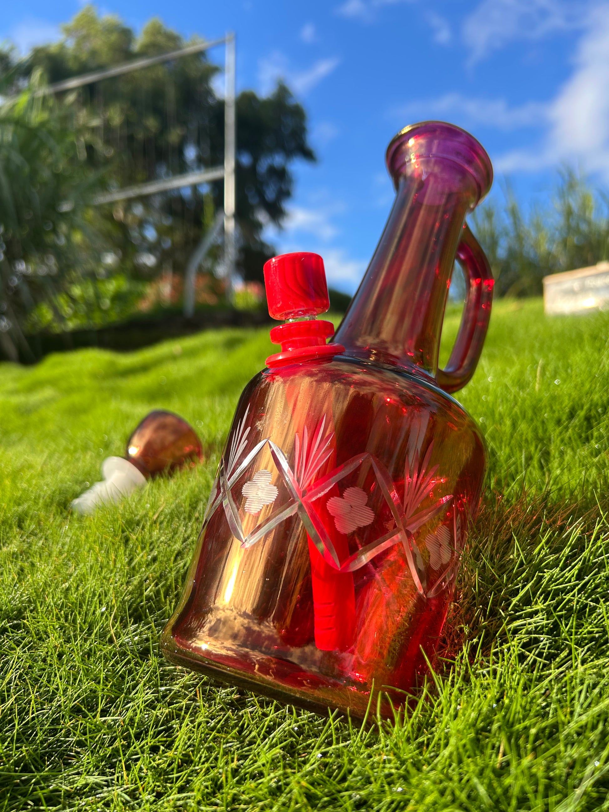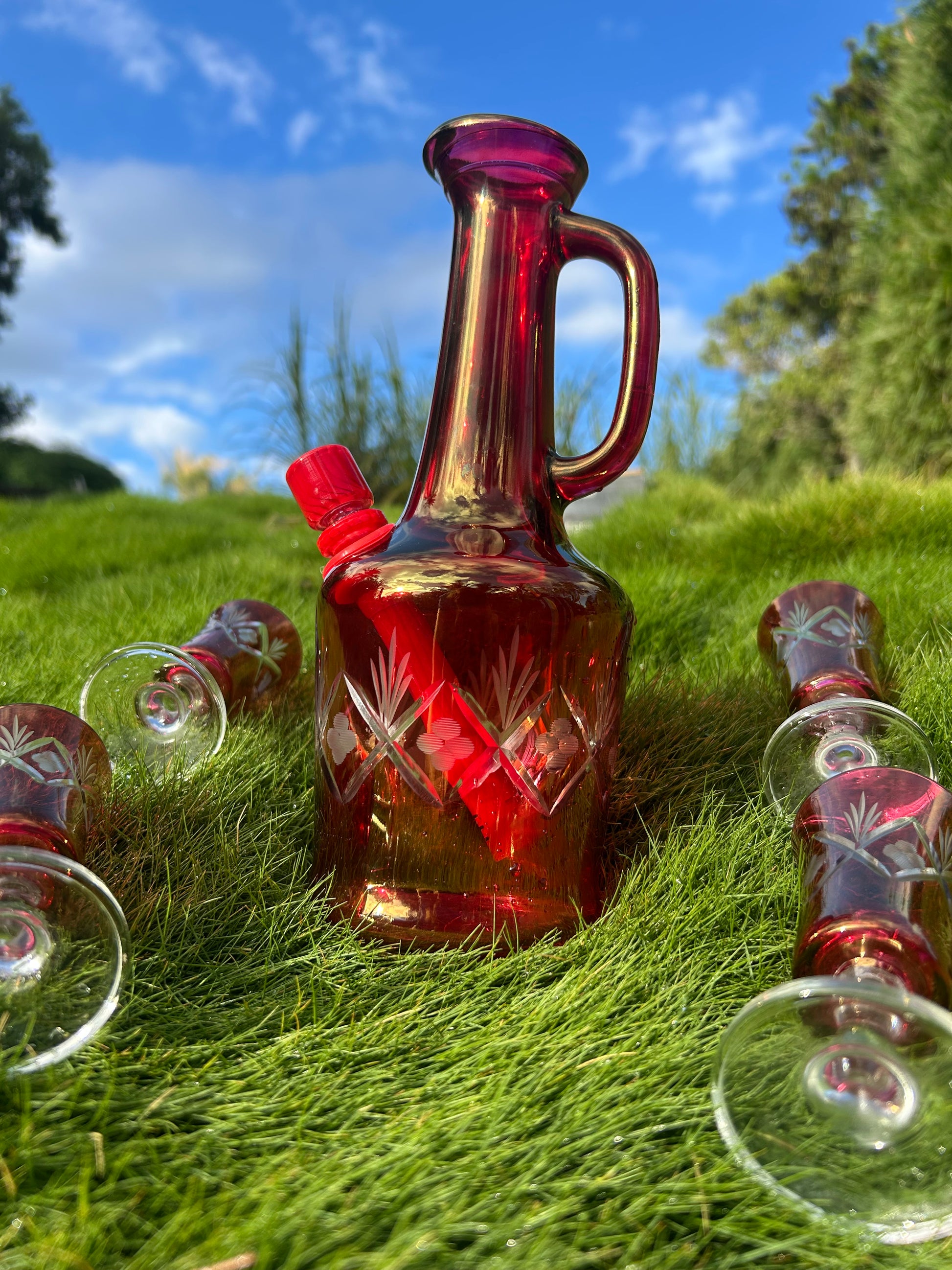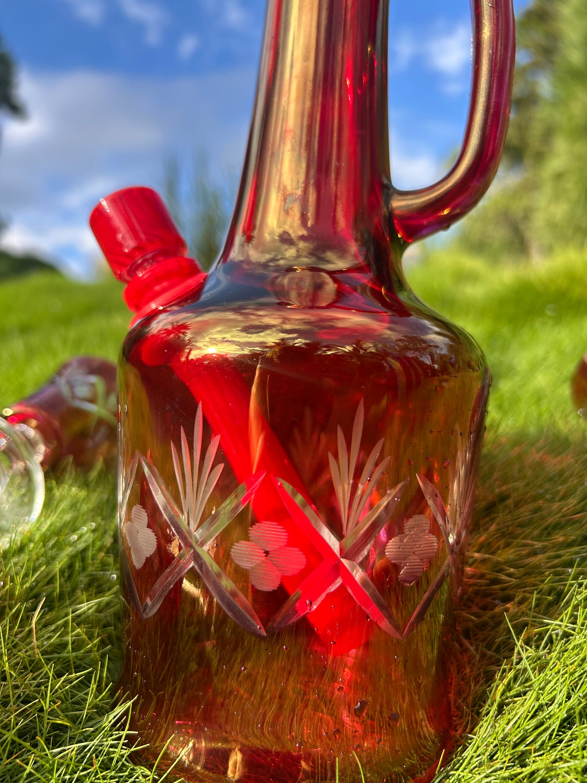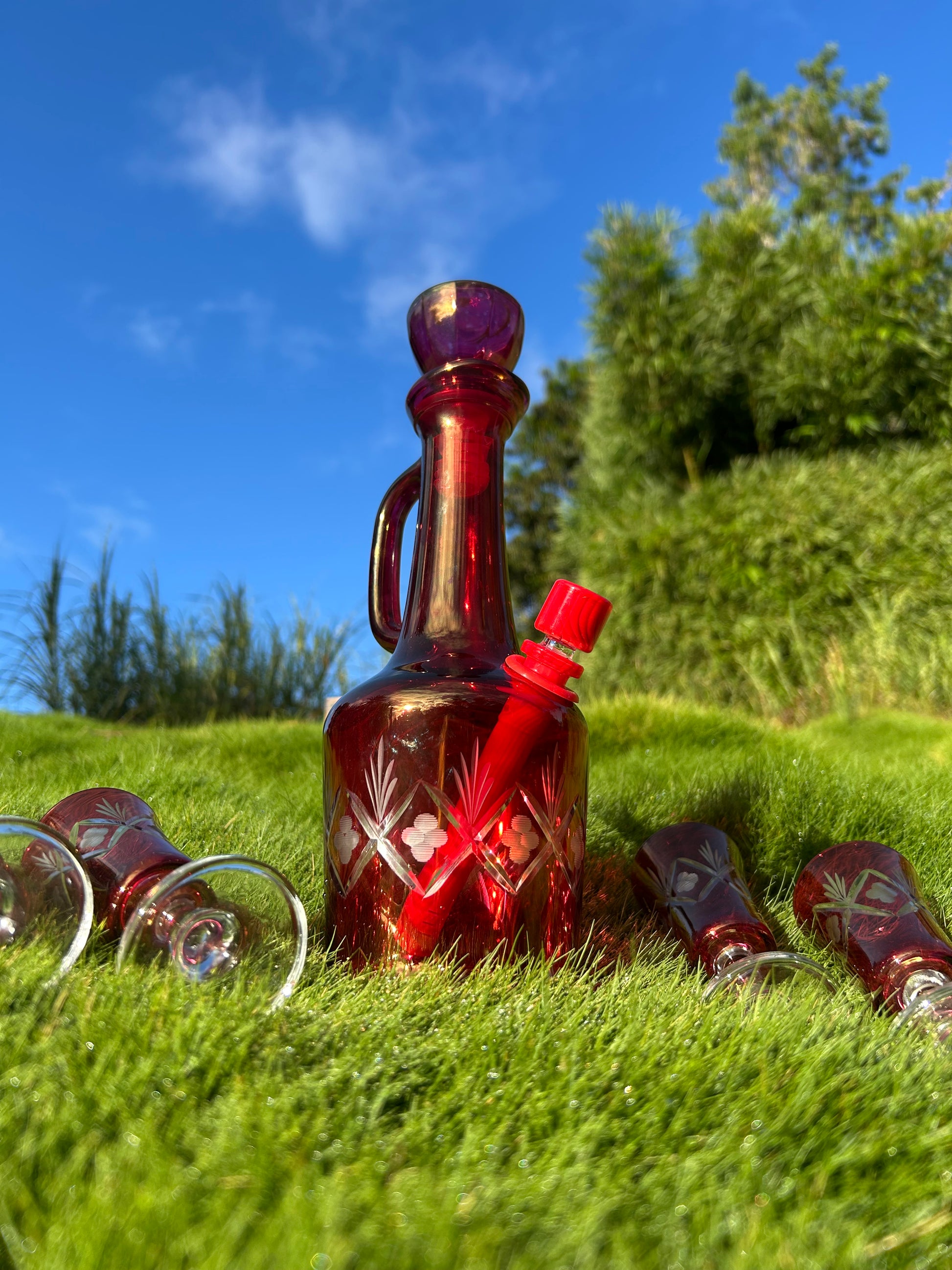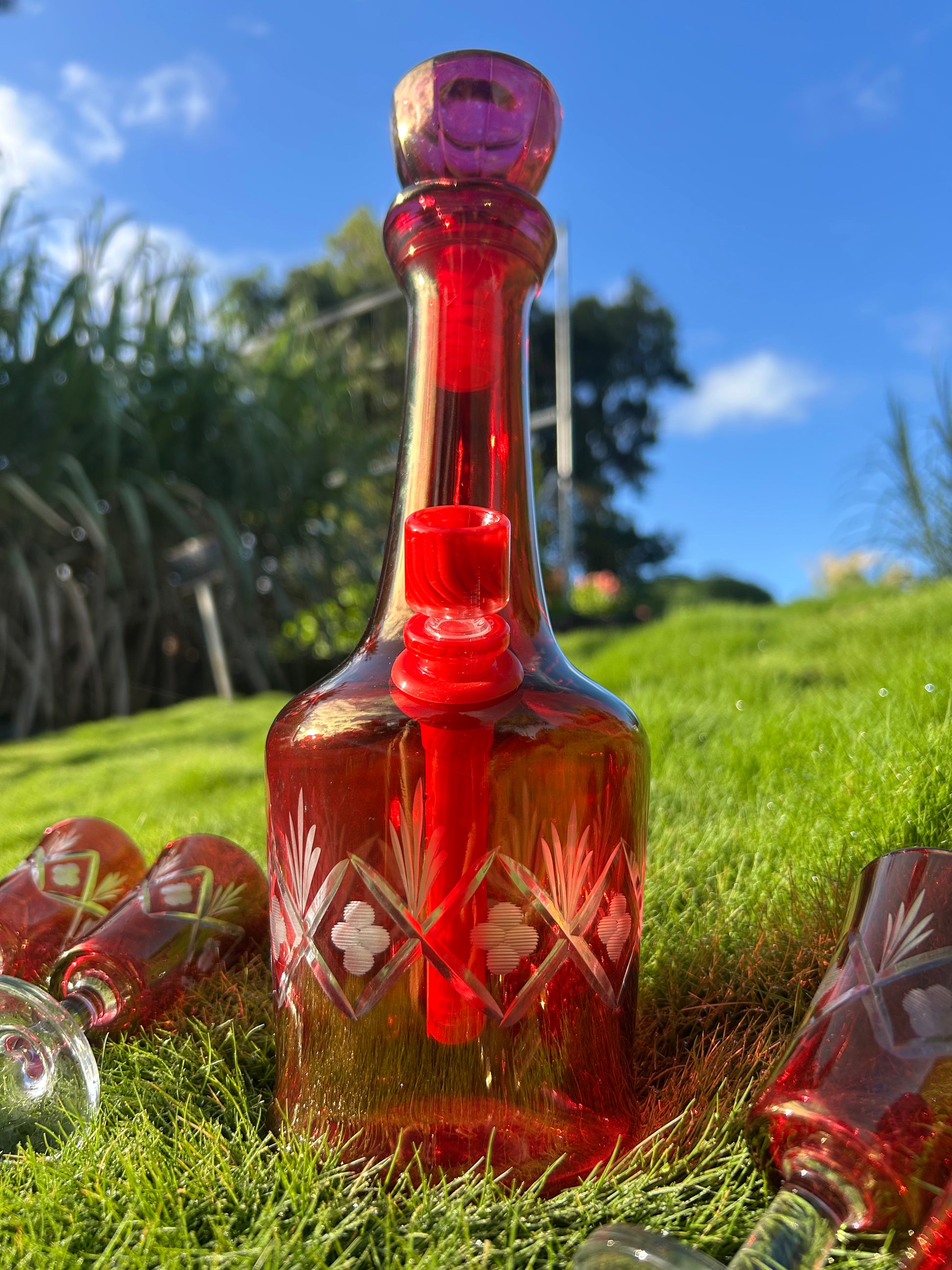 This piece isn’t just a decanter. It is my one of one transformation of a rare 19th century ruby red cut to clear glass decanter into a bespoke billy set, and there will never be another like it.